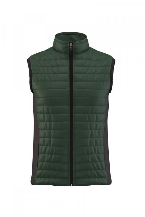 Jelek i mbushur (120g/m²) për burra, ijët me soft-shell, mbyllje me zinxhir plastik me kokë metalike "gjysmë-autolock" e tërheqëse koke të personalizuar. Dy xhepa anësorë me zinxhirë.