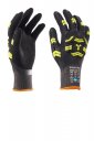Dorezë kundër goditjeve, fill antiprerje HPPE 18G, manshetë e trikotuar, e gjitha e lyer, pëllëmba me lyerje të dyfishtë prej mikroshkume nitrili, me efekt rërë për të kapur fort edhe në ambiente të lagura. Pëllëmba touchscreen. Karakteristikat: tjerrje shumë e rehatshme dhe fleksibël. Pikat e forta: mbrojtje kundër goditjeve, e rehatshme, fleksibël, kap mirë, rezistente ndaj prerjes niveli D (TDM cut)/A4 (ANSI/ISEA). Fushat e përdorimit: përdorim e montim të objekteve të mprehta, ideale në ambiente të thata, të lagura dhe ku ka vajra/hidrokarbure. Freski që zgjat falë funksioneve higjienizuese të Sanitized®. Çdo palë ka një mbajtëse me vrimë për t’i ekspozuar të varura. Njësi minimale që shitet: 6 palë (1/2 duzinë). Bordura do të jetë me ngjyrë të ndryshme sipas masës.