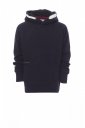 Dečja majica sa kapuljačom, dvostruko prošivenim šavovima, belom uzicom sa šavovima u boji majice i zatvaranjem sa dvostrukim metalnim prstenovima, raglan rukavima, ušivenim uzorkom V izreza, kengur džepovima, malim džepom sa patentnim zatvaračem, rastegljivim rebrastim manžetnama i donjim porubom te pojačanim šavovima.