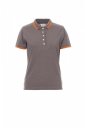 Zenska strukirana polo majica kratkih rukava sa pet bijelih dugmadi, okovratnikom i obrubom rukava blago kontrastne boje, rebrastim rubovima okovratnika i rukava, bočnim otvorima za prozračivanje sa pojačanim šavovima, skrivenim šavovima okovratnika, bočnom trakom za ojačanje.