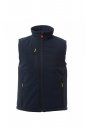WP 8000 mm H₂O, WVT 5000 g/m² 24h. Softshellväst för herr med varm vaddering (160 g/m²), krage med insatser i polarfleece, dragkedja med ”semi-autolås”-löpare av metall och kundanpassad dragtapp. Inre krage med sidodetaljer av polarfleece. Två sidofickor och en bröstficka som stängs med dragkedja. Fluorescerande dragtappar. Två innerfickor: en formad ficka med dragkedja och en för surfplatta med kardborrestängning. Justerbar nederkant med kundanpassade förslutningar.