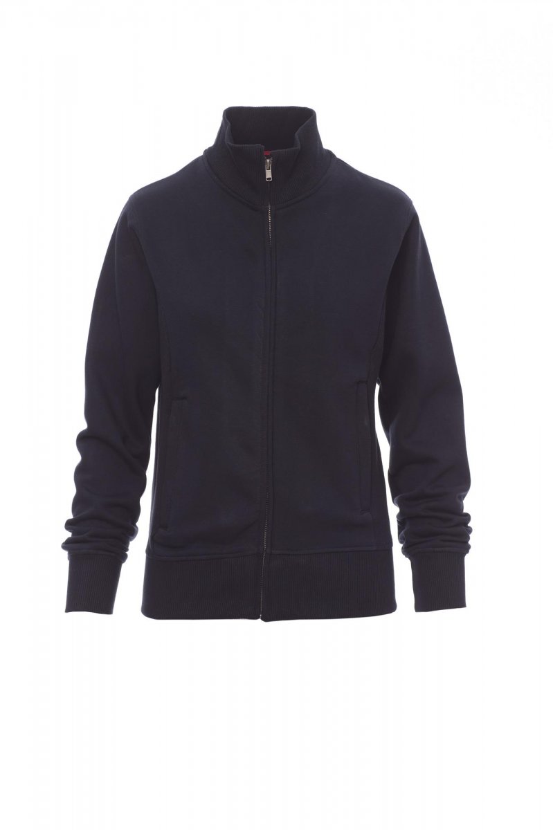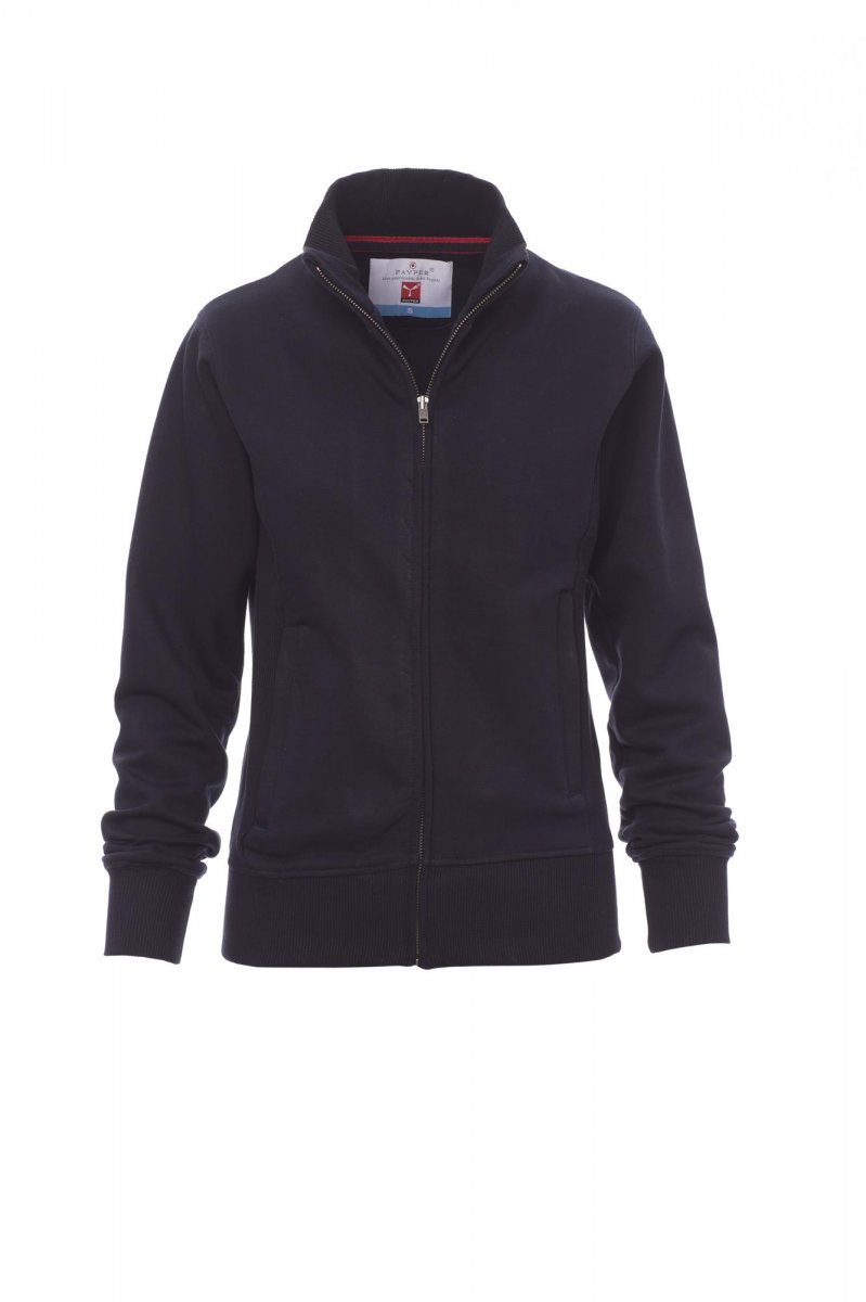Figursydd damtröja, SBS-heldragkedja av metall, en enda dragtapp, ribbstickade sidor, två fickor med dragkedja, ribbstickad stretch i manschetter, fåll och kragens insida, förstärkta sömmar.