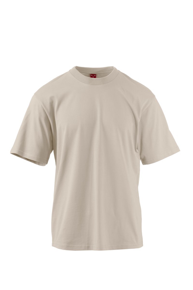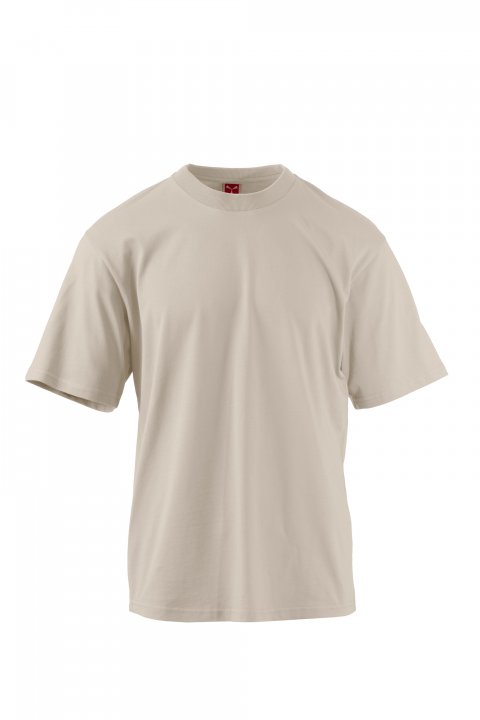 Herr-T-shirt med kort ärm i 100 % ekologisk bomull med nedsänkta axlar, 2,5 cm ribbad krage och sidsömmar. Formsydd fåll. Varje enhet säljs i set om 5.