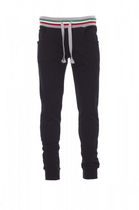 Träningsbyxa i fleece för herr med ribbstickad stretch i midjan och benens nederkant, dragsko i midjan, två fickor fram och en liten ficka.