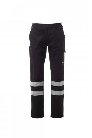 Sommarbyxa för unisex med reflekterande band i kat. 1, resår i sidorna och bältesöglor i midjan, gylf med dragkedja och plastknapp, två klassiska framfickor, en sidoficka med LOCK SYSTEM, en måttbandsficka, två bakfickor: en med lock och en öppen med kardborreknäppning, kontrasterande inlägg och sömmar, reflekterande band på bakfickan, trenålssömmar. Matchande dubbla översömmar och sömmar, med fluorescerande gula kontraststygn, för färgen Totalt svart.