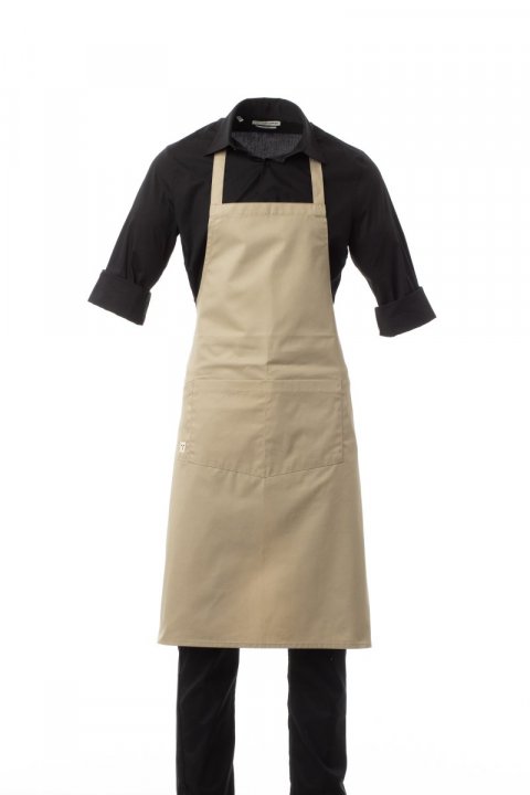 Multifunktionellt förkläde för unisex med icke-justerbar bröstlapp, tillverkat av polybomullstyg. Mittficka uppdelad i 2 fack, plus en praktisk liten ficka för föremål på sidan. Mått: 78 x 90 cm.