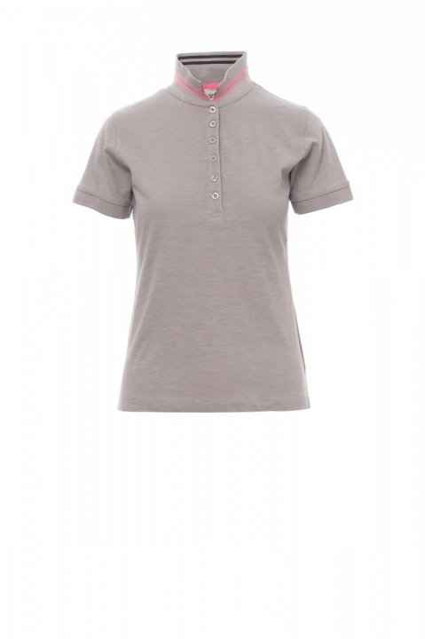 Sedef görünümlü ve tek renkli altı düğmeli, bir tarafı kontrast renkte çizgili diğer tarafı ise sadece kaldırıldığında görünen floresan çizgili bir yakaya sahip kısa kollu ve vücuda oturan kadın polo. Yakası ve kol manşetleri ribanadan yapışmıştır. Sağ kol eklemelidir. Yanları ceplidir, floresan şeritli yaka dikişlerine ve transfer etiketine sahiptir.