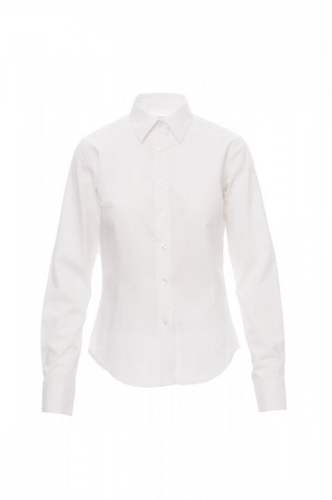 Taranmış ince pamuk dokumadan yapılmış kadın gömlek. Vücuda oturan model. Önü ve arkası pensli. İtalyan tarzı yaka. İki düğmeli ve düğme delikli bilekler. Görünür dikişli ve tek renk düğmeli patlet. Arkası robalı. Hafif ütü gerektiren kumaştan yapılmıştır.
