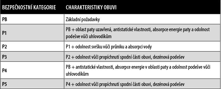 • přítomnost tužinky ve špičce na ochranu prstů u nohou chrání před nárazy s energií rov-nou 100 J (Joule) a riziky rozdrcení při maximální síle 10 kN (kiloNewton).