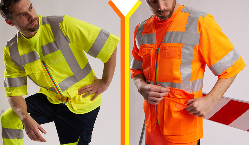 safety vests featuring innovative details and registered designs.