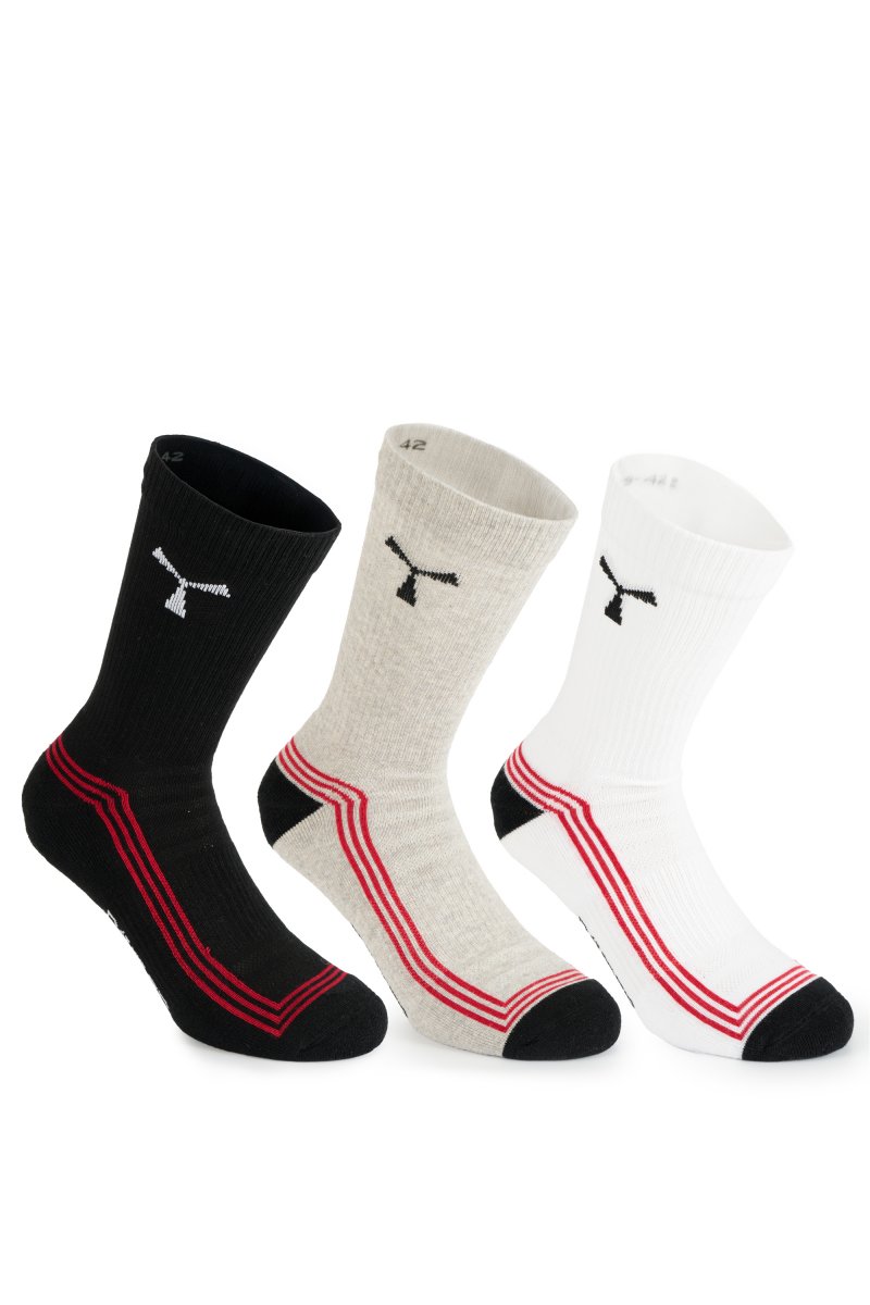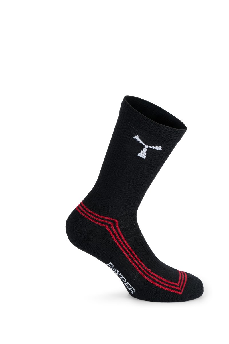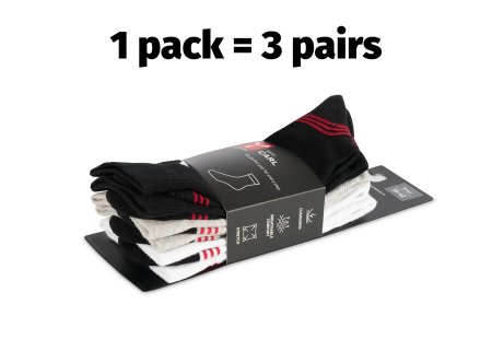 Чорапи до средата на прасеца, изработени от органичен памук и рециклиран полиестер. Ударопоглъщаща опора за петата, пръстите и свода на крака. Лесноразпознаваемо витло на Payper върху рипсения бордюр и лого върху стъпалото. Минимално продаваемо количество: 1 пакет от 6 броя (3 чифта на пакет). Теглото се отнася за чифт.