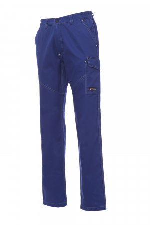 Unisexové kalhoty, letní, elastické pásky na bocích a poutka v pase, zapínání na plastový zip a knoflík, dvě přední kapsy klasického střihu, jedna postranní kapsa LOCK SYSTEM, jedna kapsa na svinovací metr, dvě zadní kapsy, z nichž jedna otevřená a druhá s klopou na suchý zip, kontrastní vsadky a prošití, reflexní pruhy na zadní kapse, trojí prošití. Druk pro bílou barvu.