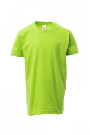 Dětské tričko s krátkým rukávem a kulatým výstřihem, 1,5 cm pružný žebrovaný lem ze směsi spandex u krku s vrchním prošíváním na přední straně, tubulární střih.
