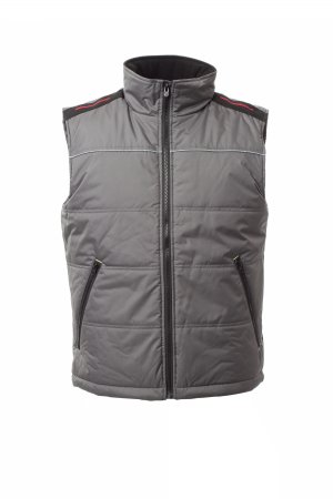 Unisex-vest, 5 mm plastlynlås med metalskyder, formsyet ryg, to rummelige yderlommer med lynlås, tittekant med refleks på bryst og ryg. Polstret, for med høj tæthed, fleece indvendigt i krave, en inderlomme.