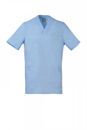 Kurzarm-Herrenkasack, V-Ausschnitt, Baumwoll-Popeline, Polyester und Lycra® T400®, hervorragende elastische und atmungsaktive Eigenschaften. Drei große aufgesetzte Taschen: eine Brusttasche mit Stiftfach und zwei untere Taschen, eine davon mit dem kultigen, Ton-in-Ton-gestickten Payper-Propeller und einer Smartphone-Innentasche. Seitenschlitze für mehr Bewegungsfreiheit. Glatte Rückseite für eine gepflegte Optik.