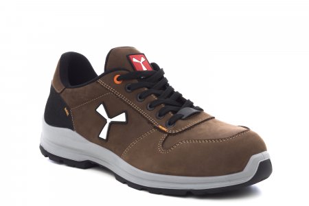 Niedriger antistatischer Herren-Sicherheitsschuh, Obermaterial aus wasserabweisendem und atmungsaktivem Leder, atmungsaktives und abriebfestes Innenfutter (auf der gesamten Innenfläche), 6+6 metallfreie Ösen, Hinterkappe aus Leder mit Pampasstruktur mit reflektierendem Einsatz, Zehenschutzkappe aus druckgegossenem Aluminium, herausnehmbare Einlage Ortholite X40 016, zertifizierte durchtrittsichere Sohle aus Verbundgewebe, Versteifungselement zum Schutz vor Verdrehungen, hufeisenförmiger Spitzenschutz, Zwischensohle aus federleichtem Polyurethan, Dämpfungssystem MASTER BALANCE aus PU-Polyether von hoher Bruchfestigkeit und ausgewogener Dichte, X-TRAIL-GRIP-Sohle aus TPU mit Fersen- und Zehenschutz.