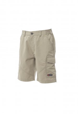 Men's shorts with side elastics and waist belt loops, zip and plastic button closure. Two classic-cut front pockets, one side pocket Lock System, one tape measure holder, two back pockets - one open with retroreflective strips and one with hook-and-loop flap. Contrasting inserts and stitching, triple-stitched inner leg seam.