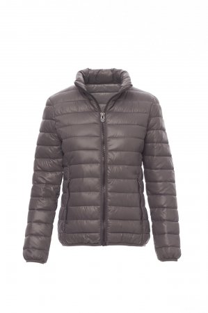 Plumífero con acolchado de fibras sueltas (160 g/m²), de mujer, cierre con cremallera de plástico de 8 mm con cursor de metal. Puños y cintura con fino ribete. Dos bolsillos exteriores con cremallera. Tres bolsillos interiores.