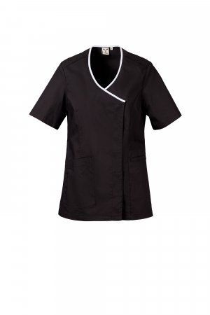 Naiste lühikeste varrukatega tööjakk, mis on valmistatud puuvillasest poplinist, polüestrist ja Lycra® T400® materjalist ning millel on suurepärased elastsed ja hingavad omadused. V-kaelus kontrastset värviga palistusega. Sulgemine peidetud nööpidega ja kerge võrkkattega varruka all, mis soodustab hingavust. Kaks madalat taskut: üks sisetasku ja üks tasku, millel on iseloomulik toon-toonis tikitud propeller. Küljel on lõhikud ja tagaküljel sisseõmmeldud voldid.