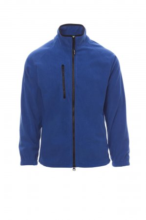 Miesten fleecetakki, jossa on musta 8 mm:n muovivetoketju, raglanhihat, helmassa säädettävä kiristysnauha, joustavat hihansuut, kaksi taskua, joissa on peitetty vetoketju, edessä yksi vetoketjutasku, pääntiessä erivärinen vahvikenauha, vahvistetut saumat.