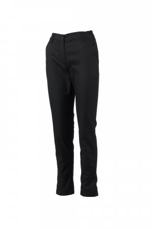Naisten monikäyttöiset chinohousut. Valmistettu puuvillatoimikkaasta ja Lycra® T400:sta®. Erinomaiset joustavat ja hengittävät ominaisuudet, haarakappaleessa mukavaa joustavaa verkkokangasta. Vetoketju- ja nappikiinnitys, vyölenkit ja joustava vyötärönauha. Edessä viistot saumataskut, kolikkotasku oikealla puolella. Takana napilla suljettavat kahden kaitaleen napinläpitaskut.