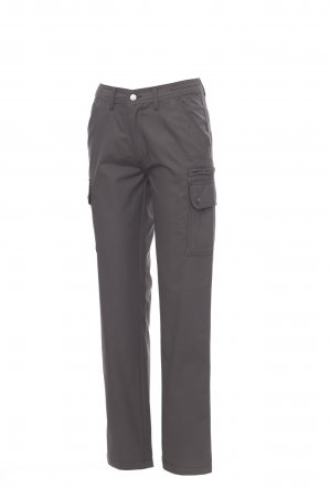Klasszikus nyári nadrág nőknek rugalmas oldalrésszel és derékövvezetőkkel. Cipzáras rögzítés fémgombbal, két elülső zseb, két oldalsó zseb hajtókával és patentgombbal, bal oldalon egy cipzáras zseb, jobb oldalon zseb összehajtható mérőszalagnak, két hátsó zsebnyílás gombbal és gomblyukkal.