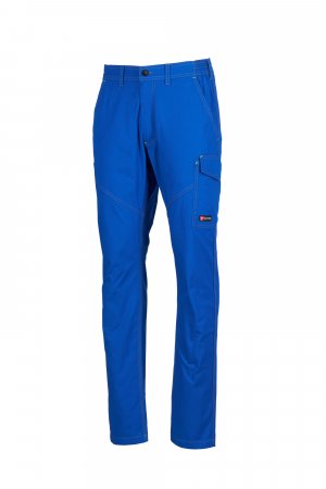 Buxur fyrir öll kyn úr léttu teygjuefni með rifvörn, endurskinsrendur, teygjanlegar á hliðum og beltalykkjur á mitti, rennilás með plasthnöppum, tveir venjulegir vasar að framan, einn hliðarvasi með LOCK SYSTEM, einn vasi fyrir málband á hægri hlið, tveir rassvasar, einn opinn og einn með flipa og frönskum rennilás, innlegg og saumar í andstæðulit, endurskinsrendur á rassvasa, þrefaldir saumar.