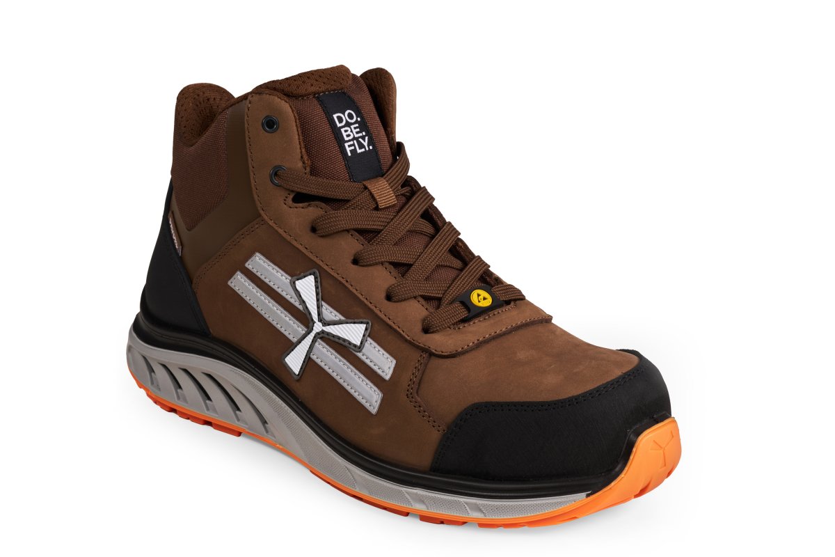 Calzatura di sicurezza alla caviglia, con tomaia in pelle nabuk. Fodera interna traspirante e resistente all'abrasione. Paratacco in TPU di rinforzo e protezione anti-abrasione in punta. Puntale in fibra di vetro, più leggero e più resistente. Lamina antiperforazione ultraleggera. Plantare estraibile Pulsar Cushioning in PU bi-densità e sistema a celle aperte, ergonomico, antistatico e ammortizzante. Intersuola realizzata con mescola in PU ultraleggero a due densità. Prima intersuola per una corretta ammortizzazione e un comfort prolungato. Seconda intersuola per una maggiore stabilità e il giusto sostegno. Battistrada in TPU ultra resistente all'idrolisi e all'usura. Calzatura di sicurezza ESD.
