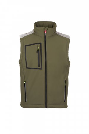 WP 8000 mm H₂O, WVT 5000 g/m² 24h. Машки трослоен „soft-shell“ елек со топла вата (160 g/m²), со крагна со вметки од флис, SBS патент со метален лизгач со полуавтоматско заклучување и персонализиран влечкач. Внатрешна јака со странични детали од флис. Ретрорефлектирачки ленти на рамената и долниот дел од грбот. Термозапечатен градeн џеб со облепен патент. Два странични џеба со облепени патенти со ретрорефлектирачки детали. Флуоресцентни влечкачи. Два внатрешни џеба: еден обликуван со патент на десната страна од градите и еден за таблет со чичак-затворање лево. Долен дел прилагодлив со персонализирани стопери.