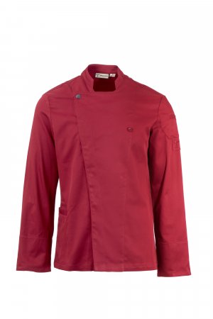 Kuchársky pánsky rondon so stojačikom vyrobený z bavlneného kepra a materiálu Lycra® T400®, s vynikajúcimi vlastnosťami pružnosti a priedušnosti. Dvojradové zapínanie na patentné gombíky, lem, ktorý sa dá založiť a pripnúť na hrudi gombíkom vytvára efekt fazónky a inovatívneho výstrihu do V. Dlhý rukáv s manžetou na vyhrnutie, vsuvka zo sieťoviny zvyšuje priedušnosť. Ikonicky tvarovaná nášivka na ľavom ramene, s výšivkou vrtule v tónoch rovnakej farby, s vreckom na perá. Praktické vrecko na smartfón v páse. Vertikálne rozparky v spodnej časti uľahčujú pohyby.