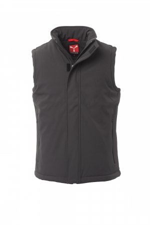 WP 8000 mm H₂O, WVT 5000 g/m² 24h. Moški 3-slojni soft-shell telovnik s toplo podlogo (160 g/m²), z zapenjanjem na ježka in zadrgo s kovinskim drsnikom s polavtomatskim zapiralnim mehanizmom ter prilagojenim jezičkom. Dva zunanja žepa s prevlečeno zadrgo, en notranji žep z obrobo in zapiranjem na ježka, en notranji žep za tablični računalnik, prav tako zaprt z ježkom. Na zadnji strani ovratnika našitek po meri z odsevnim detajlom. Spodnji rob je nastavljiv s prilagojenimi zategovalniki.