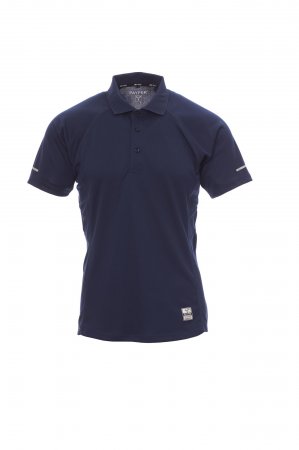 Bluzë polo për meshkuj me material dry-tech, mëngë të shkurtra raglan, tre kopsa të njëjta, qepje anësore të dyfishta për një përshtatje më të mirë, skaj i formuar dhe më i gjatë në pjesën e pasme, futje reflektuese në mëngë dhe në pjesën e pasme të qafës, shirit ngjitës në qafë me kontrast, etiketë transferimi.