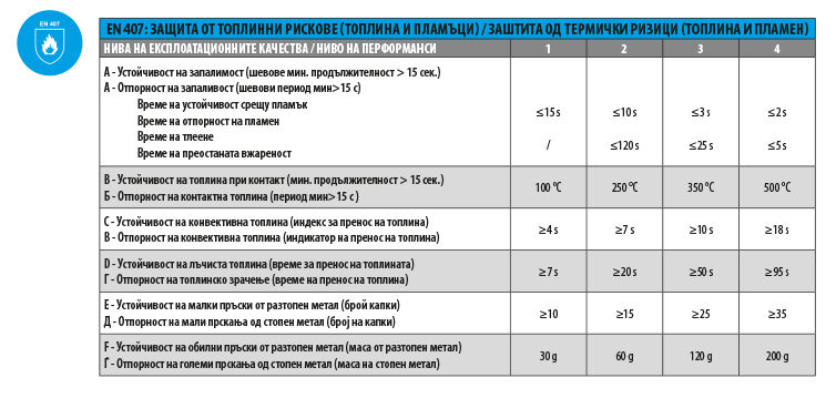 EN 407: ЗАЩИТА ОТ ТОПЛИННИ РИСКОВЕ (ТОПЛИНА И ПЛАМЪЦИ)