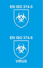 The standard specifies that gloves used to protect against bacteria and fungi, to which the biohazard pictogram is applied, must have passed the penetration test (impermeability). An additional viral penetration test must be carried out for virus protection. Should the glove pass this additional test, the word “Virus” is added under the previous pictogram.