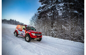 Naturalmente, el «Rojo» es el Pajero Mitsubishi WRC Plus, compañero de viaje cada vez más eficiente y equipado con neumáticos de clavos para afrontar mejor los terrenos congelados por las temperaturas que pueden llegar a ser extremas.
