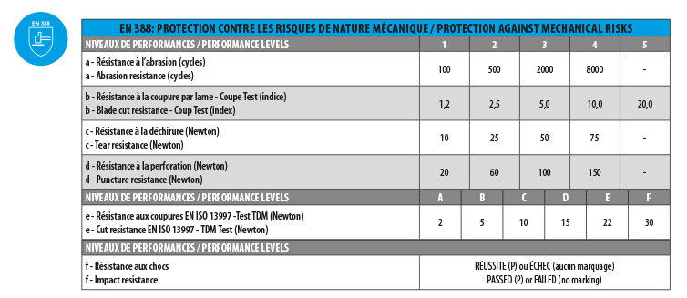 EN 388: PROTECTION CONTRE LES RISQUES DE NATURE MÉCANIQUE
