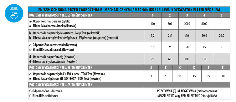 EN 388: MECHANIKUS JELLEGŰ KOCKÁZATOK ELLENI VÉDELEM
