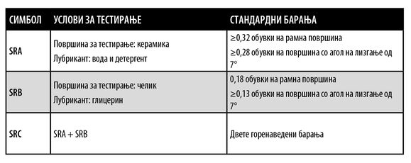Оваа карактеристика е пропишана од стандардот EN ISO 20345:2011 во согласност со методата утврдена во стандардот EN ISO 13287:2012 според следната табела: