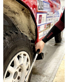 „Czerwony pojazd” to oczywiście towarzysz podróży Mitsubishi Pajero WRC+, jeszcze bardziej wydajny i wyposażony w kolcowane superopony, aby radzić sobie jak najlepiej w terenie w ekstremalnie niskich temperaturach.