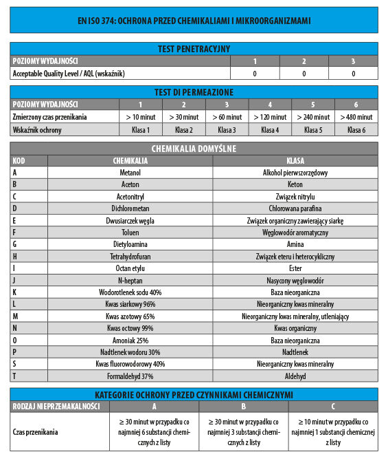 Norma ta określa wymogi dotyczące rękawic, których zadaniem jest ochrona użytkownika przed chemikaliami w oparciu o trzy metody testowania: