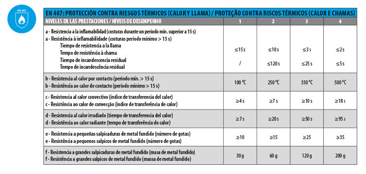 EN 407: PROTEÇÃO CONTRA RISCOS TÉRMICOS (CALOR E CHAMAS)