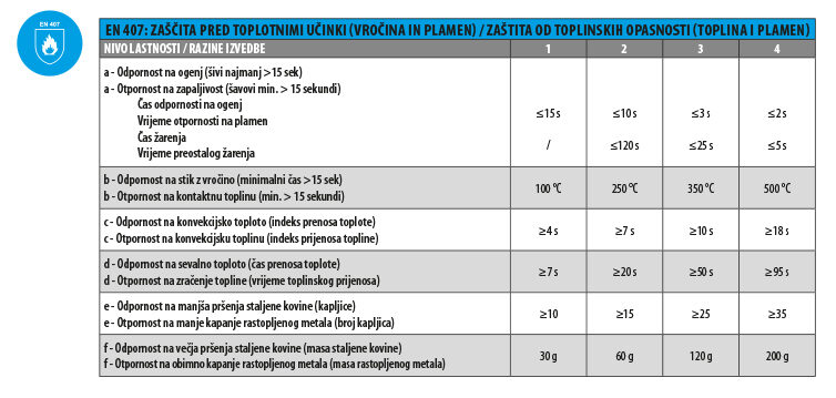 EN 407: ZAŠČITA PRED TOPLOTNIMI UČINKI (VROČINA IN PLAMEN)