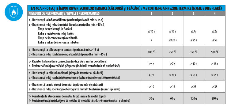 EN 407: MBROJTJE NGA RREZIQE TERMIKE (NXEHJE DHE FLAKË)