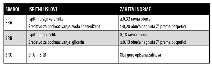 Nova obuća može u početku imati manju otpornost na klizanje od one naznačene rezultatom ispita. Otpornost obuće na klizanje može se promeniti i u zavisnosti od stanja istrošenosti đona. Podudaranje sa specifikacijama ne garantuje odsutnost klizanja u bilo kakvim uslovima.