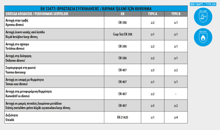 EN 12477 - KAYNAK İŞLEMİ İÇİN KORUNMA