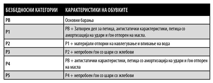 • дека обувките имаат заштитна капна за прсти која што штити од удари до 100 J (џула) и од ризиците од смачкување со сила до 10 kN (кило њутни)