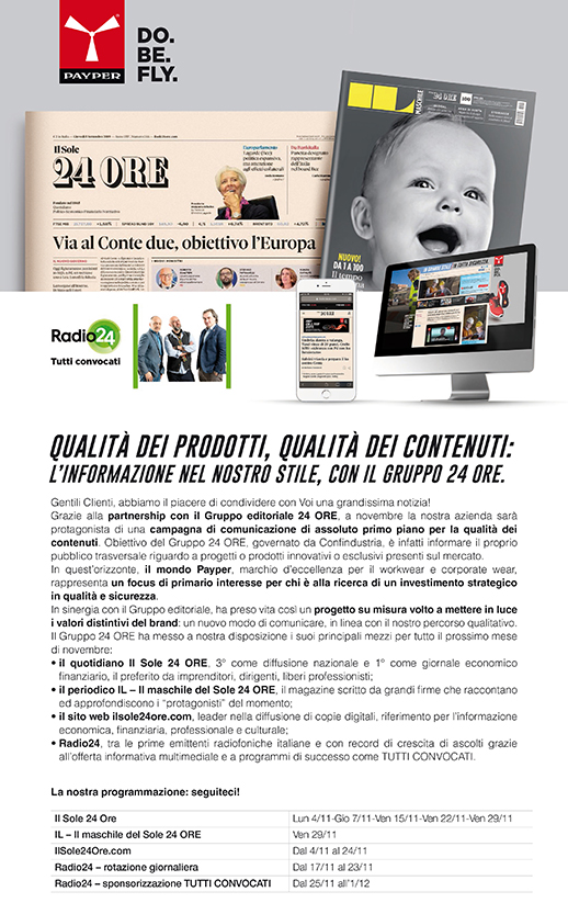 ADV Payper Wear sul Gruppo editoriale "24 Ore"