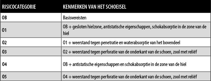 Persoonlijke beschermingmiddelen. Beroepsschoenen/werkschoeisel. Het schoeisel heeft geen teenbescherming en biedt dus geen bescherming tegen fysieke en mechanische risico’s door stoten en samendrukken op de punt van de voet.
