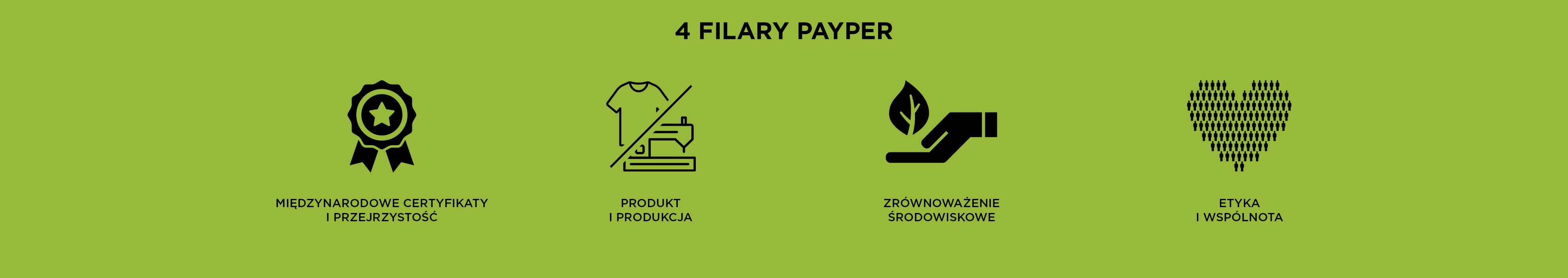 redniookresowym celem firmy jest 100% osiągnięcie produkcji odzieży z certyfikatem etycznym poprzez całkowicie kontrolowany łańcuch od surowców, po procesy i produkty końcowe. Już dziś, przystępując do programu „Zero Discharge of Hazardous Chemicals”, cała produkcja Payper mieści się w zakresie parametrów europejskiego rozporządzenia REACH (WE nr 1907/2006), które rejestruje, ocenia, zatwierdza i ogranicza stosowanie substancji chemicznych. Planowane jest ponadto lansowanie nowych linii T-shirtów i bluz wykonanych z bawełny wyprodukowanej zgodnie z kryteriami zrównoważonego rozwoju ustanowionymi przez organizację non-profit Better Cotton, której celem jest uczynienie globalnej produkcji bawełny bardziej zrównoważoną dla środowiska oraz osób zaangażowanych w proces obróbki.