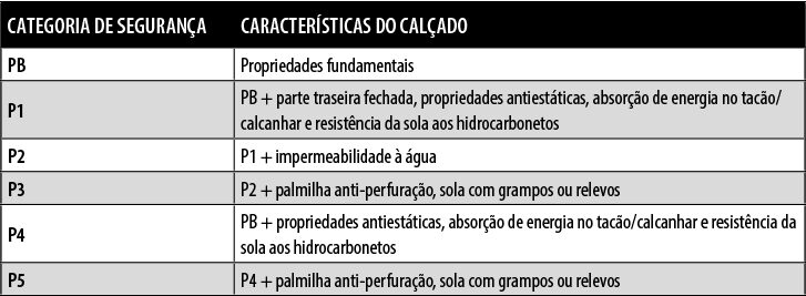 Equipamento de proteção individual. Calçado de proteção. A especificação colocada no sapato garante: